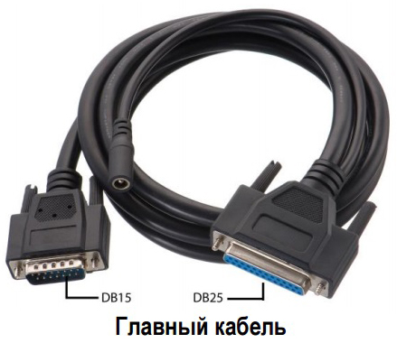 Його підключають до адаптера з одного боку (за допомогою роз'єму DB25). З іншого боку розташований роз'єм B15, до якого підключають один із перехідників для діагностичної колодки авто. Також в проводці тут розташований роз'єм для підключення живлення від прикурювача.