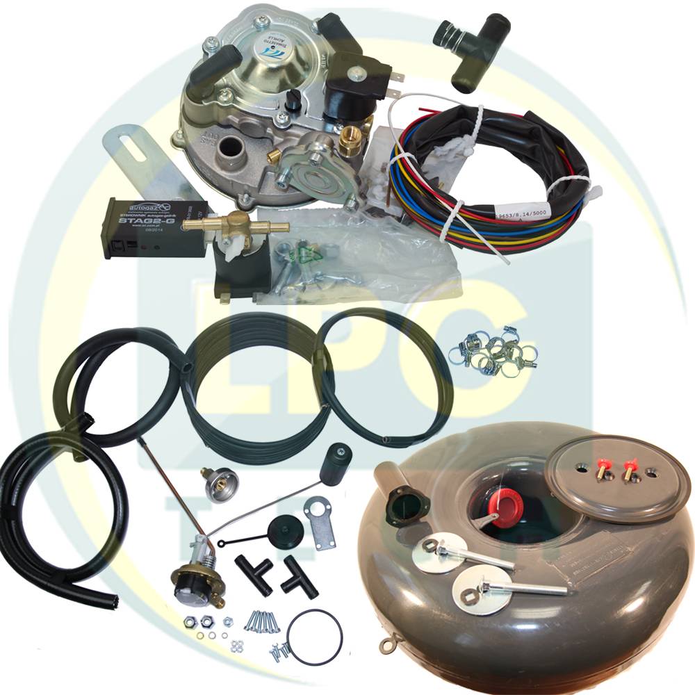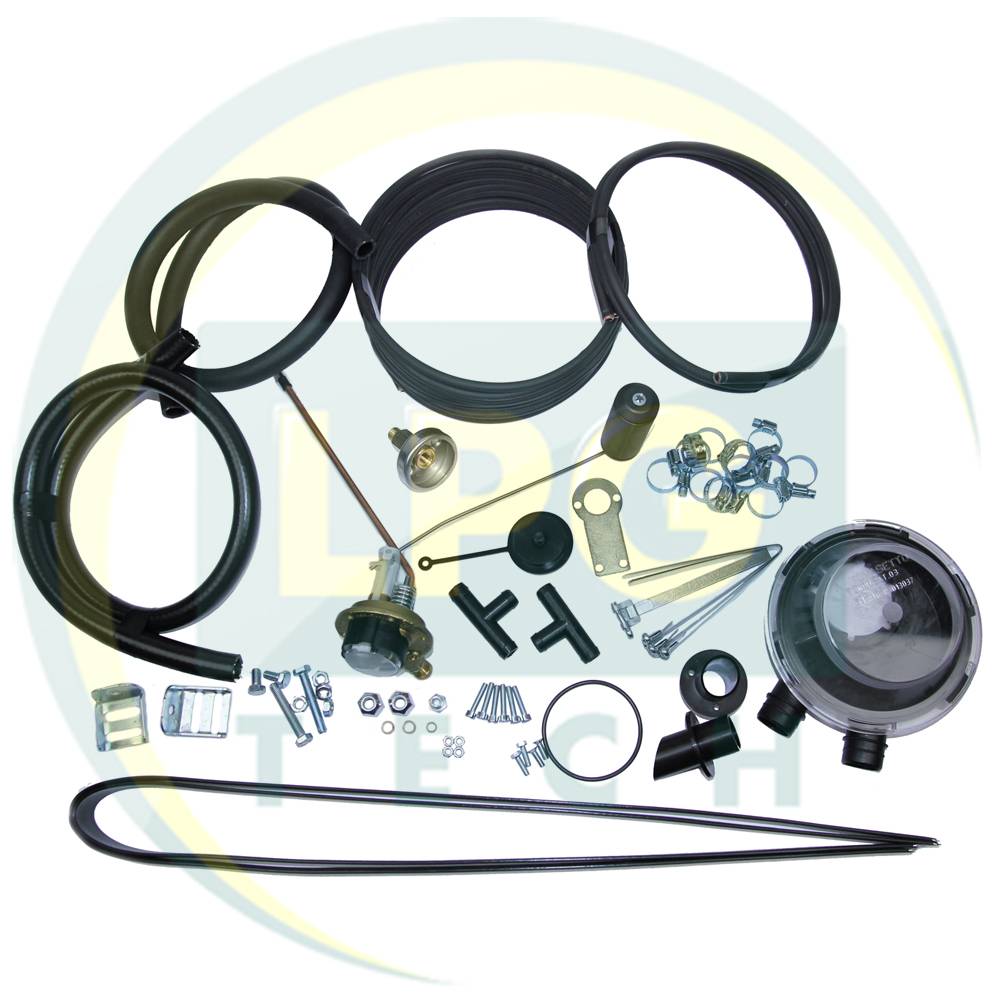 Набір газового обладнання включає в себе мультиклапан Tomasetto класу «А». Має аварійний клапан і отвір для підключення датчика рівня газу. Мультиклапан включає в себе виносний заправний пристрій на кронштейні (ВЗУ). Для врізки даного ВЗУ в бампер знадобиться спеціальна кришка з контркришкою. При виборі тороідального балона (під запаску), в комплект включають мультиклапан 200-300, а при виборі циліндричного балона - 300-30.